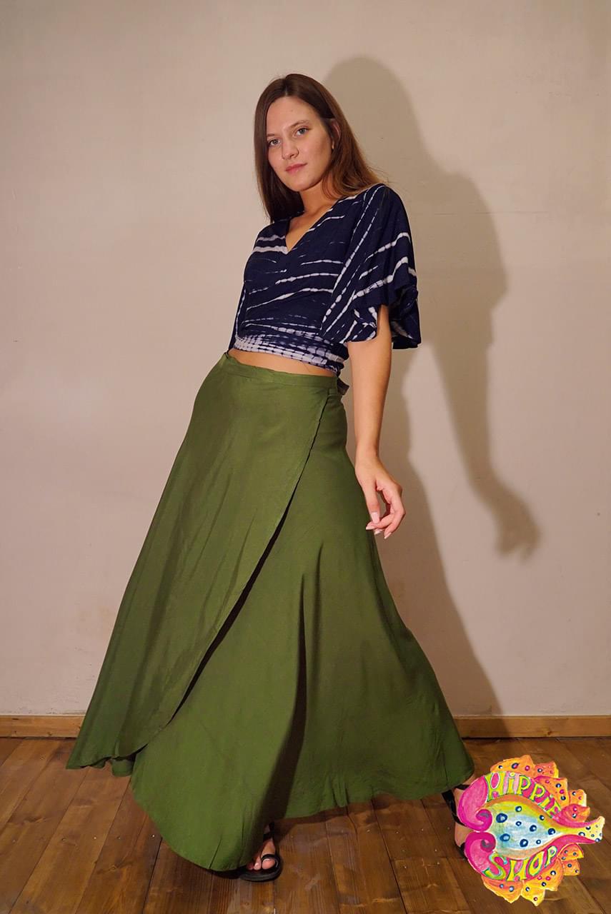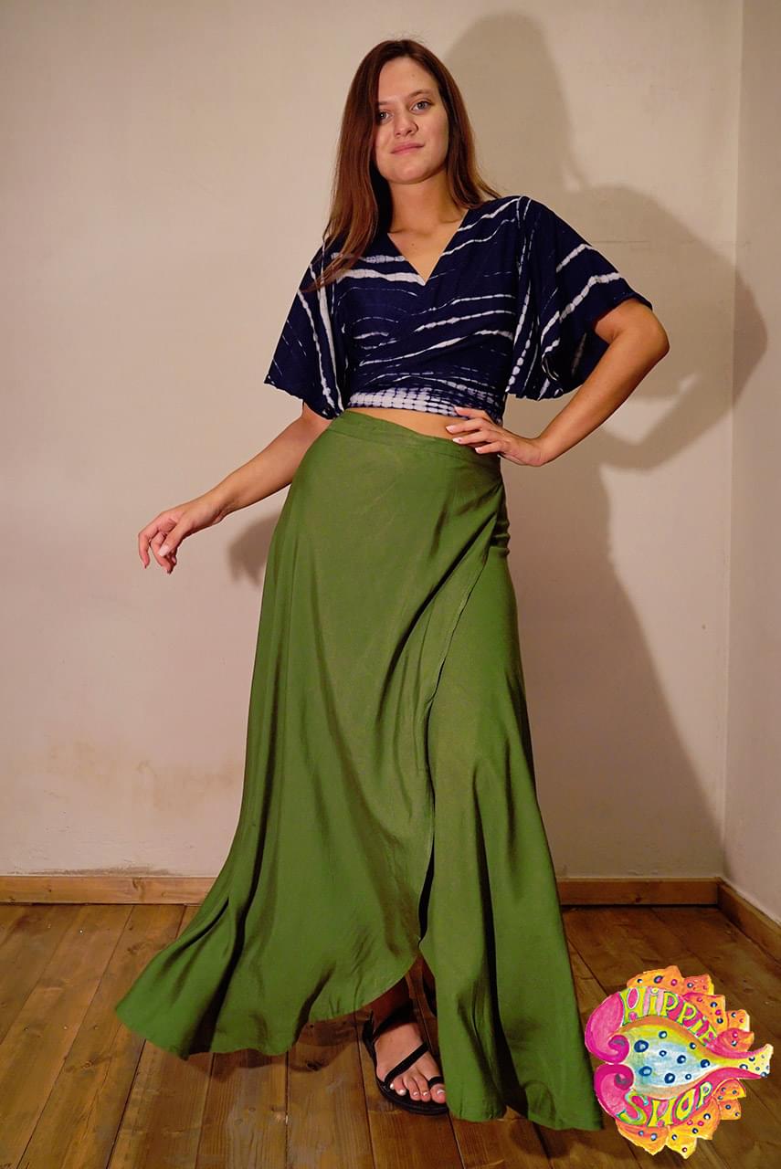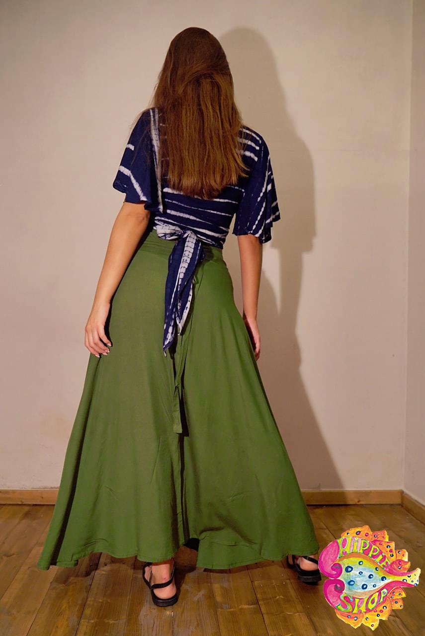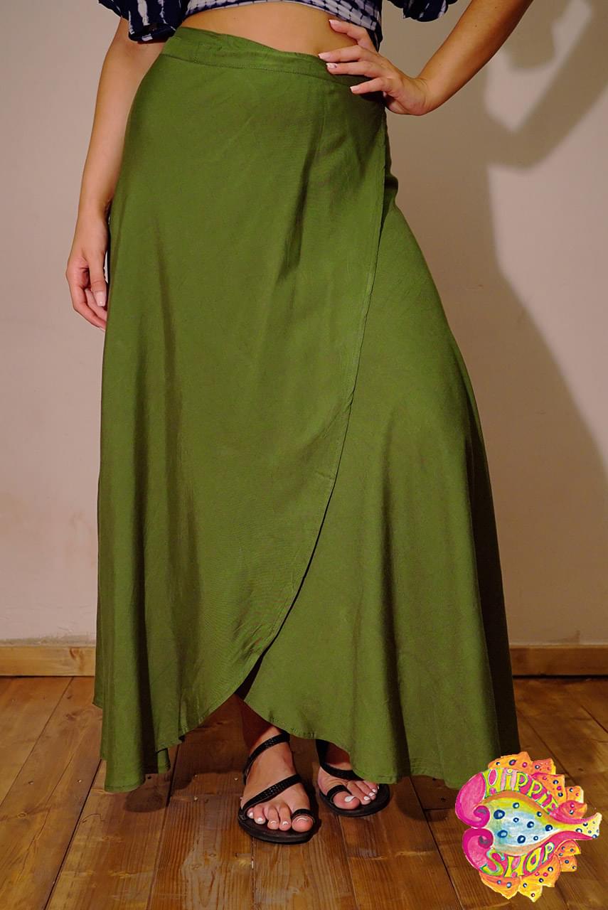 Φούστα Wrap Around, rayon, one size, boho, ethnic, χρώματος πράσινο