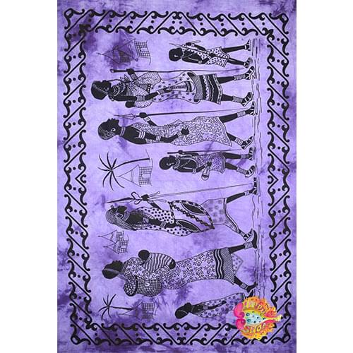 Πανό-Μαντήλι Αφρικάνικη Παράσταση, four special prints, best quality, 100% βαμβάκι, χρώματος μωβ-μαύρο και διαστάσεων 0.75×1.15
