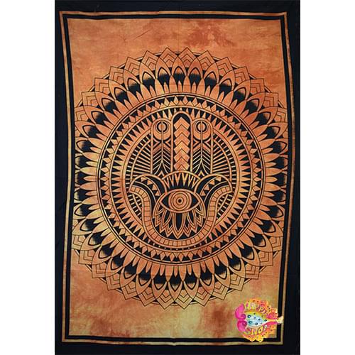 Πανό-Μαντήλι Το χέρι της Φάτιμα, four special prints, best quality, 100% βαμβάκι, χρώματος πορτοκαλί-μαύρο και διαστάσεων 0.75×1.15