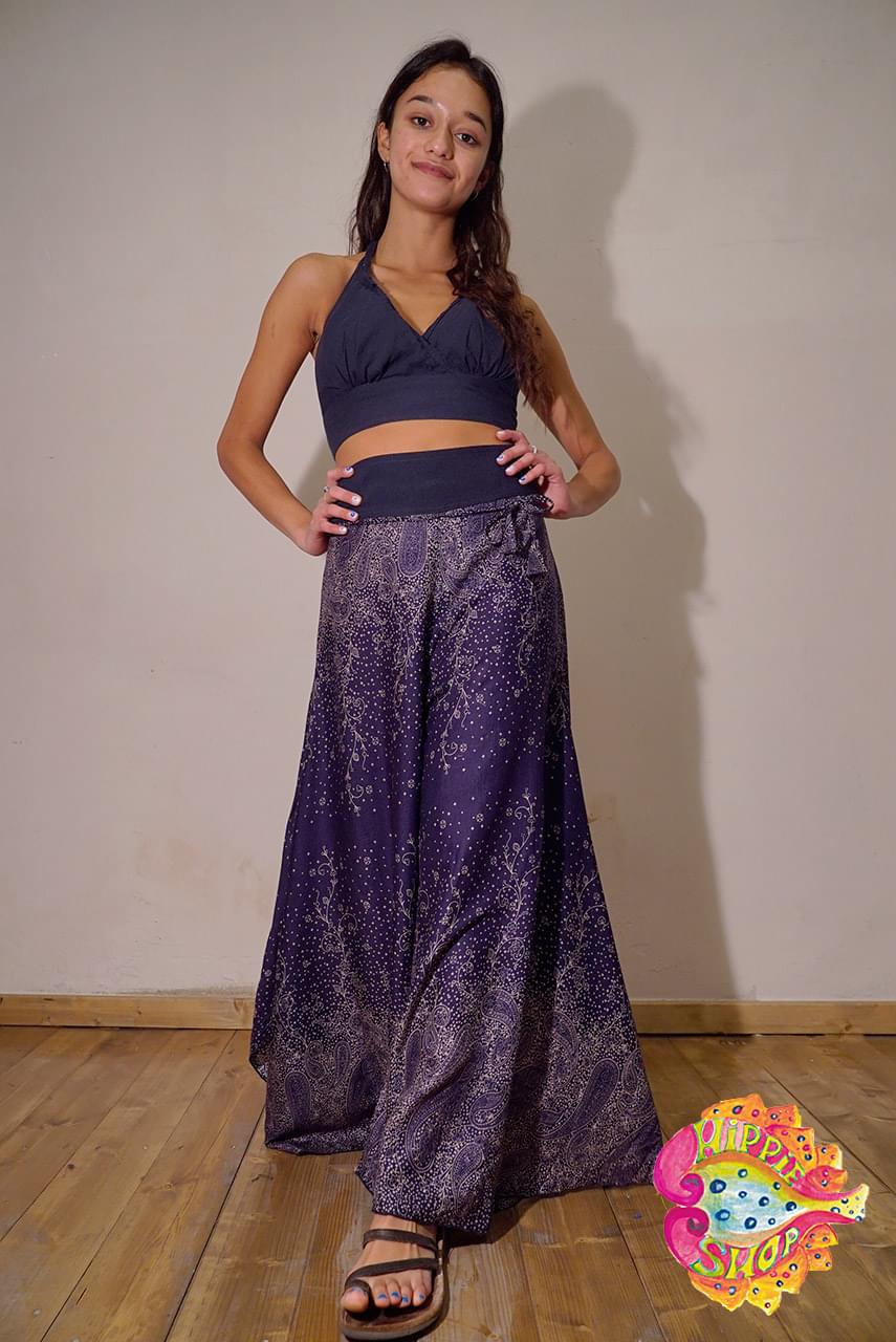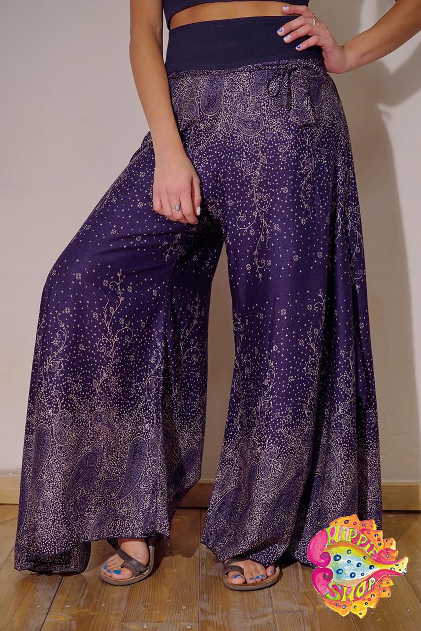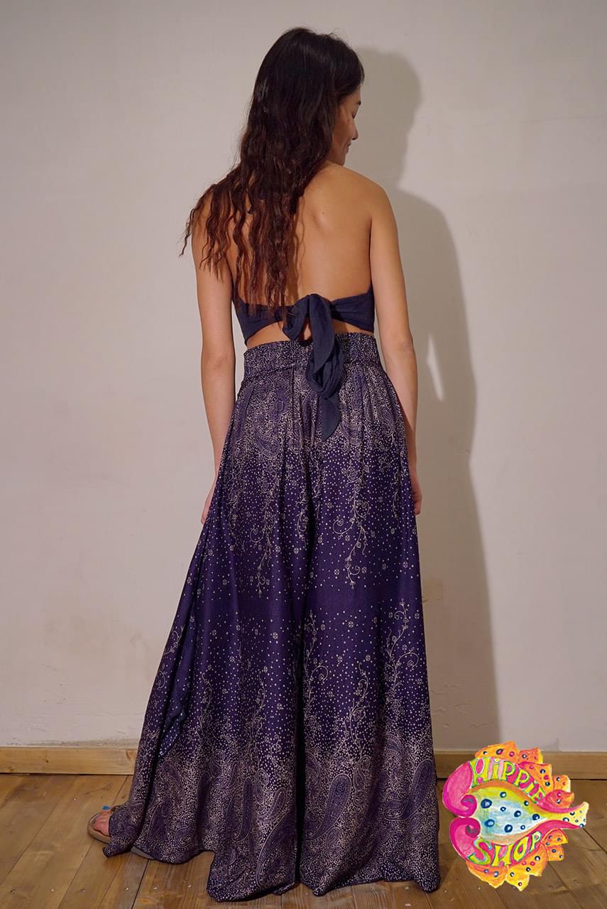 Παντελόνα 100% βαμβακερή, boho, ethnic, one size, χρώματος μπλε.
