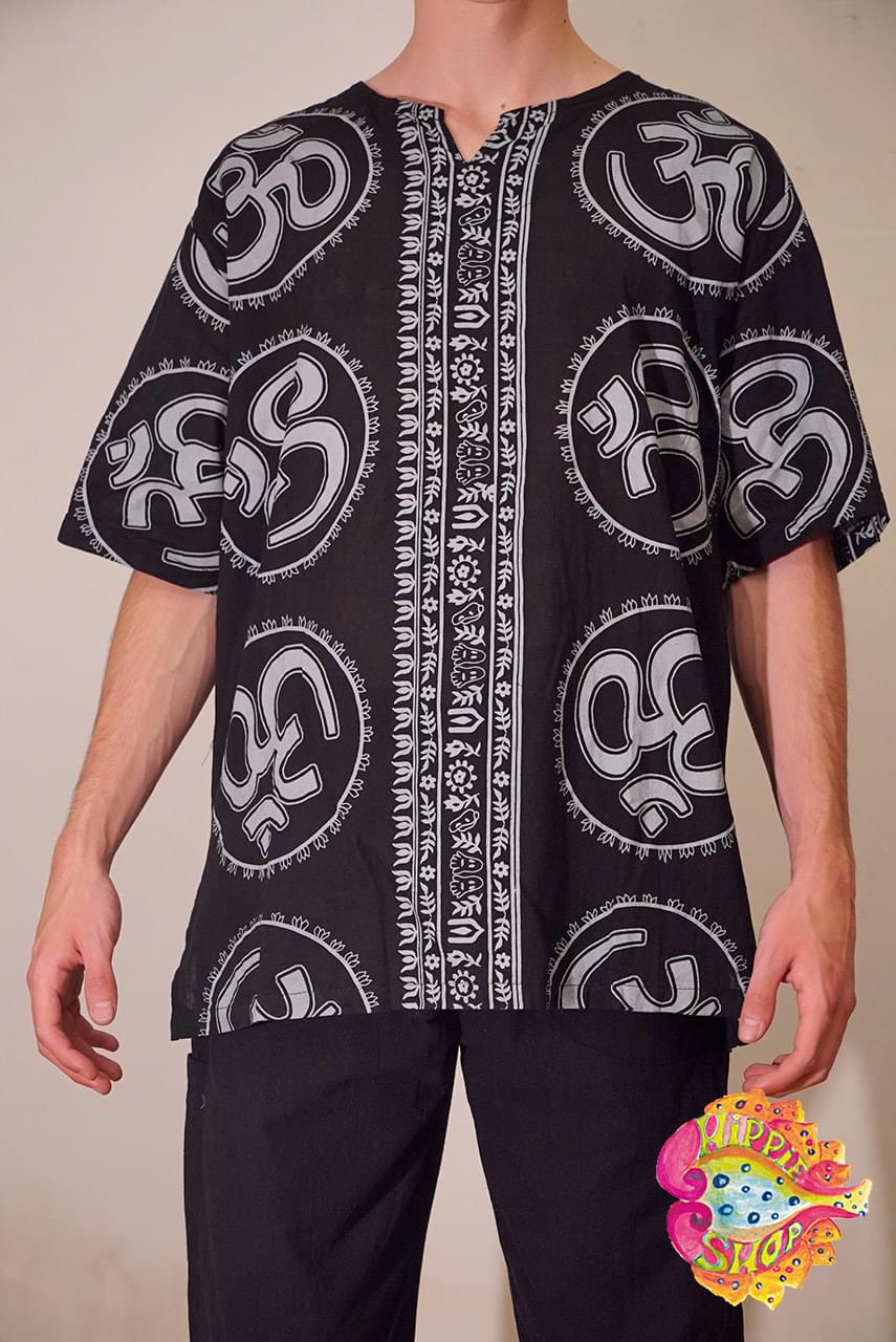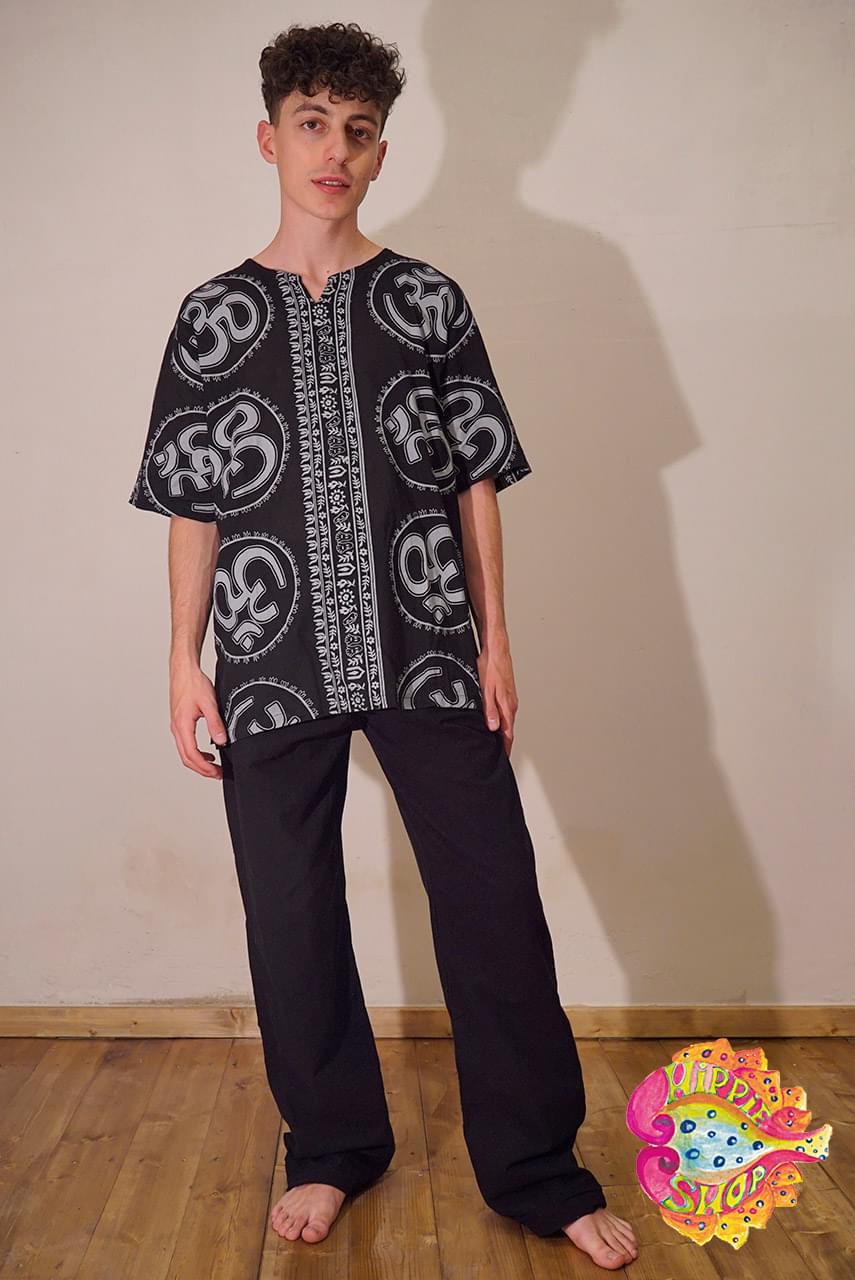 Πουκαμίσα κοντομάνικη, 100% cotton, one size, με σχέδιο OM, χρώματος μαύρο.