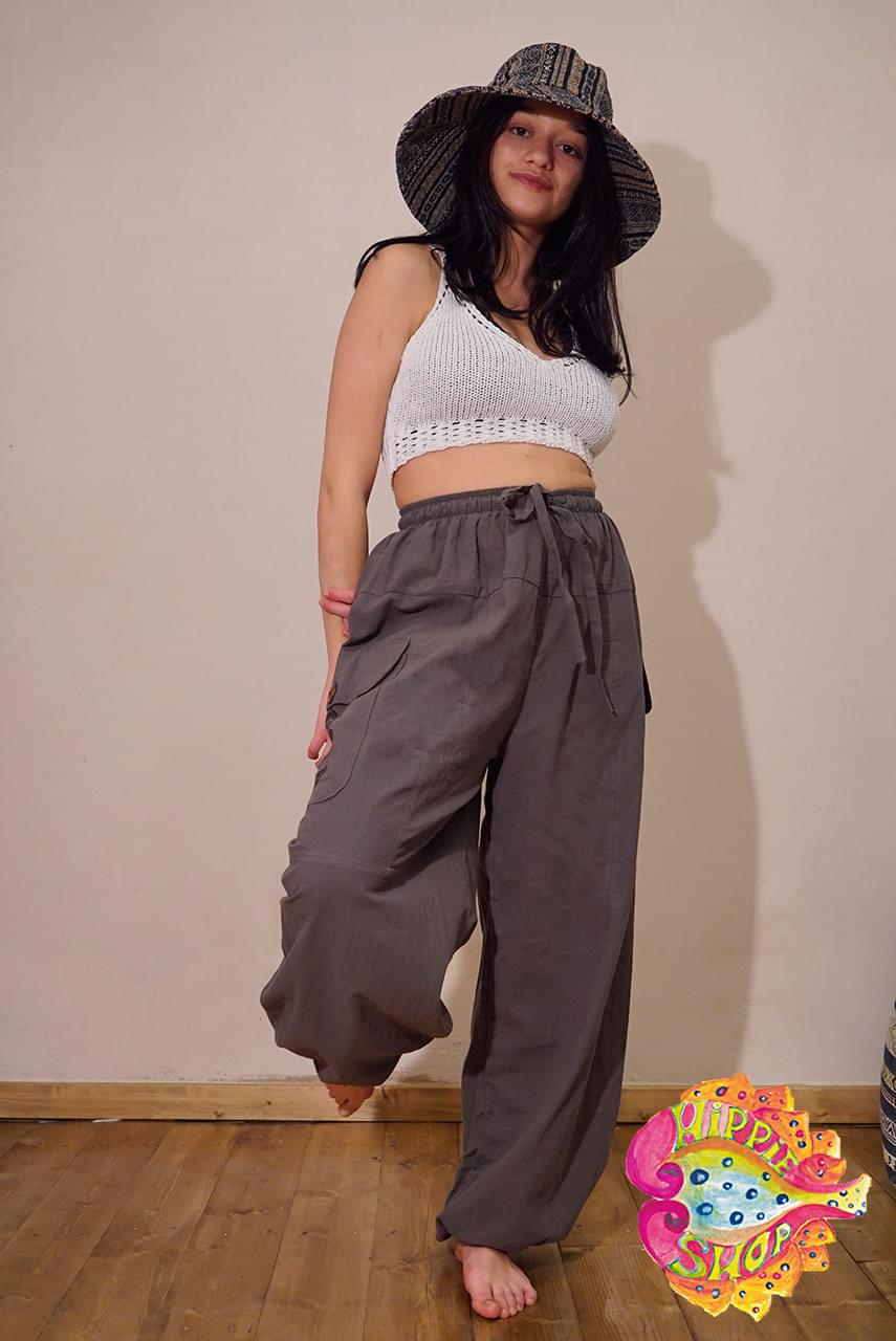 Σαλβάρι-Παντελόνα, 100% cotton, one size, χρώματος γκρι με σχέδιο ΟΜ.