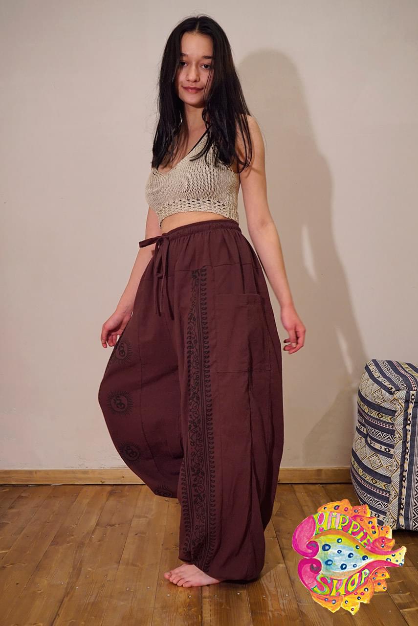 Σαλβάρι-Παντελόνα, 100% cotton, one size, χρώματος μπορντό με σχέδιο ΟΜ.