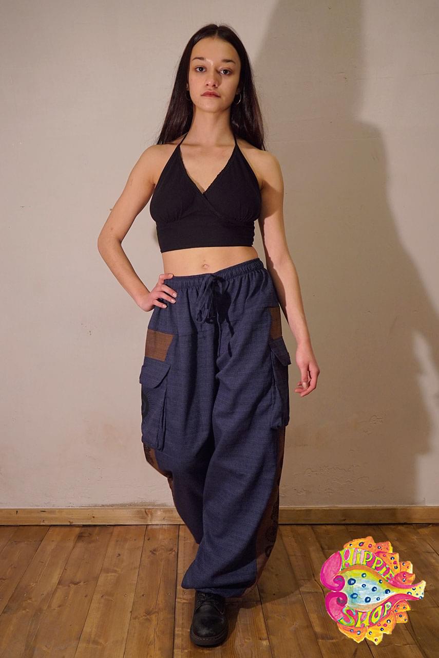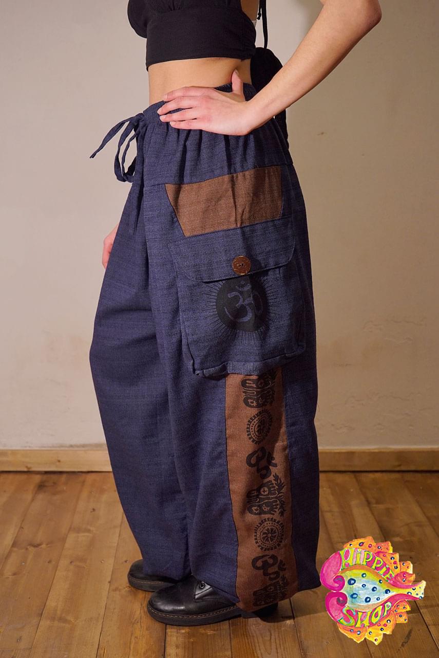 Σαλβάρι-Παντελόνα unisex, 100% heavy cotton, ethnic, boho, one size, χρώματος μπλε με σχέδιο ΟΜ