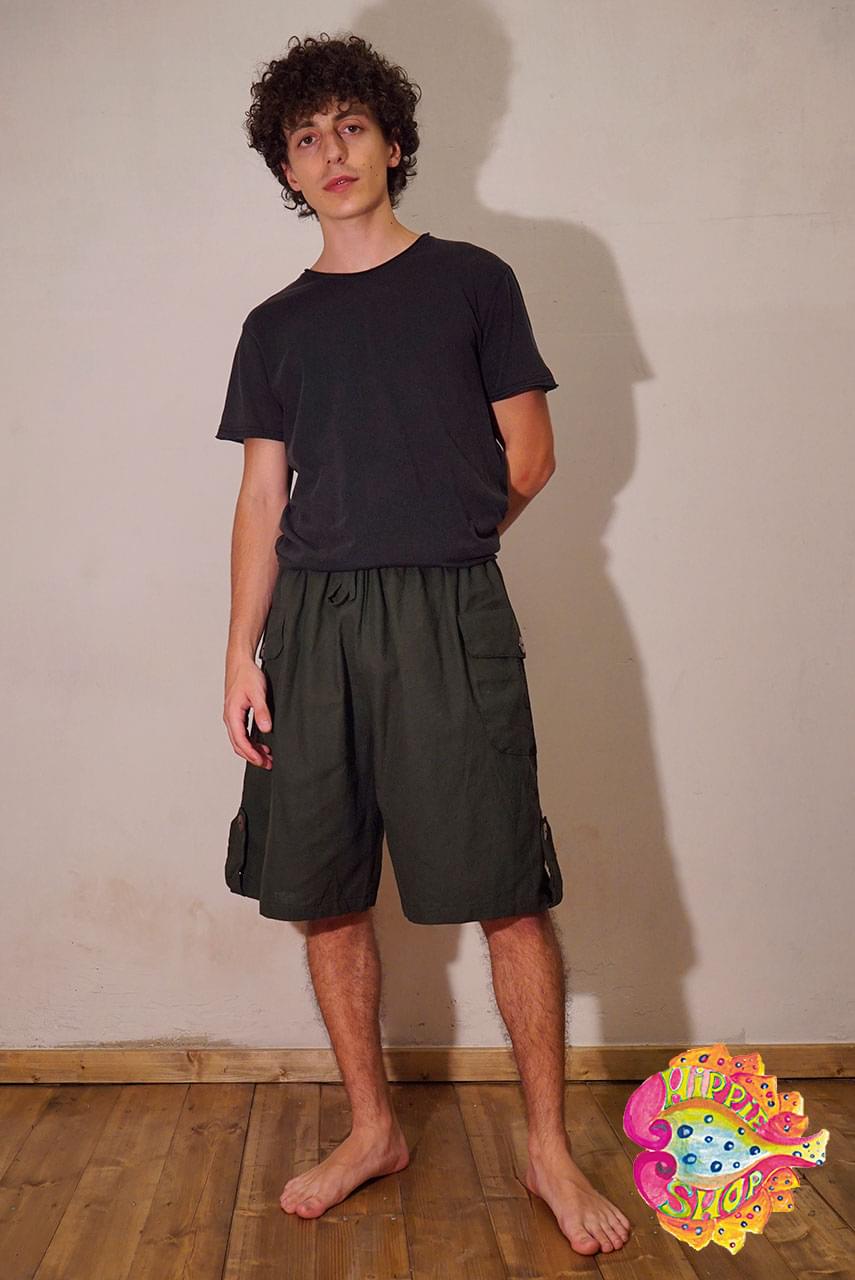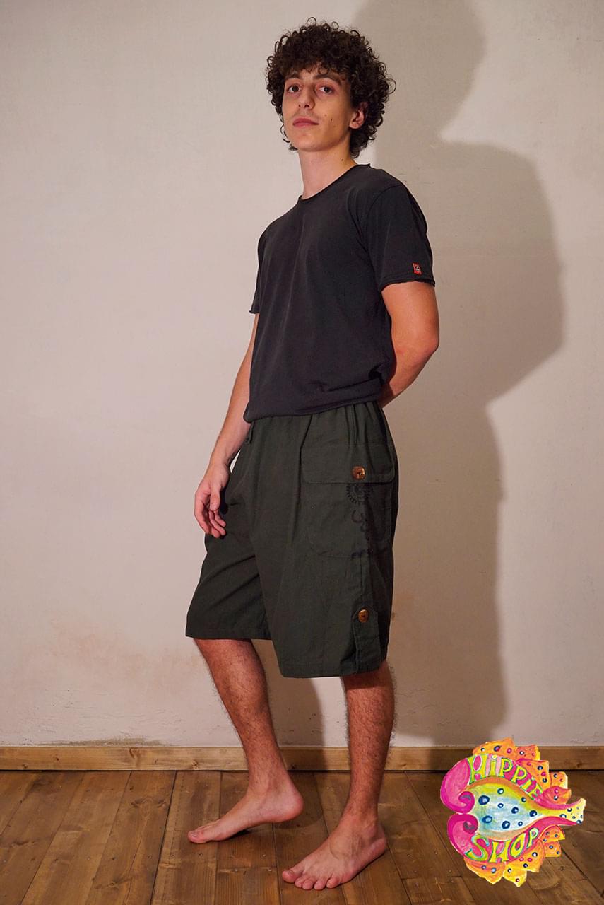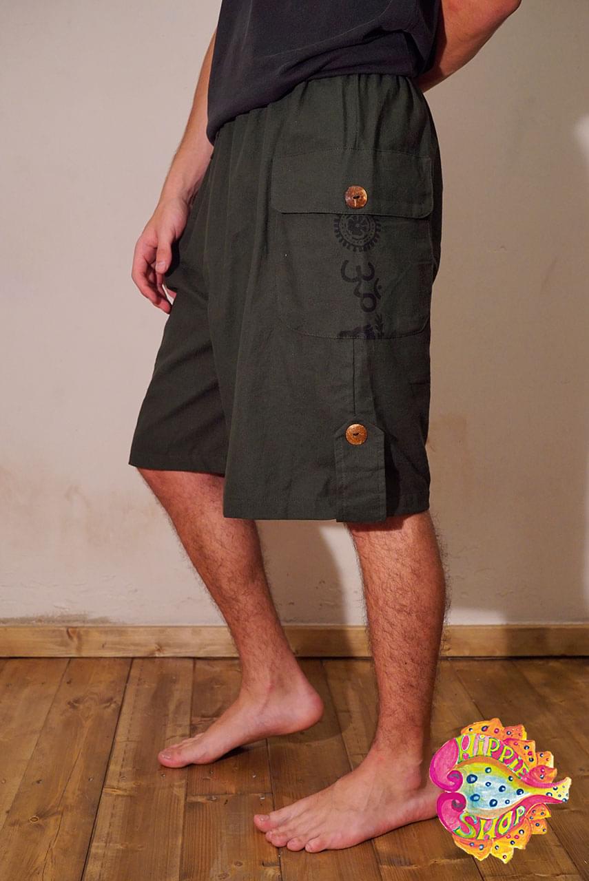 Βερμούδα unisex, 100% βαμβακερό, boho, ethnic, one size, χρώματος χακί με σχέδιο ΟΜ.