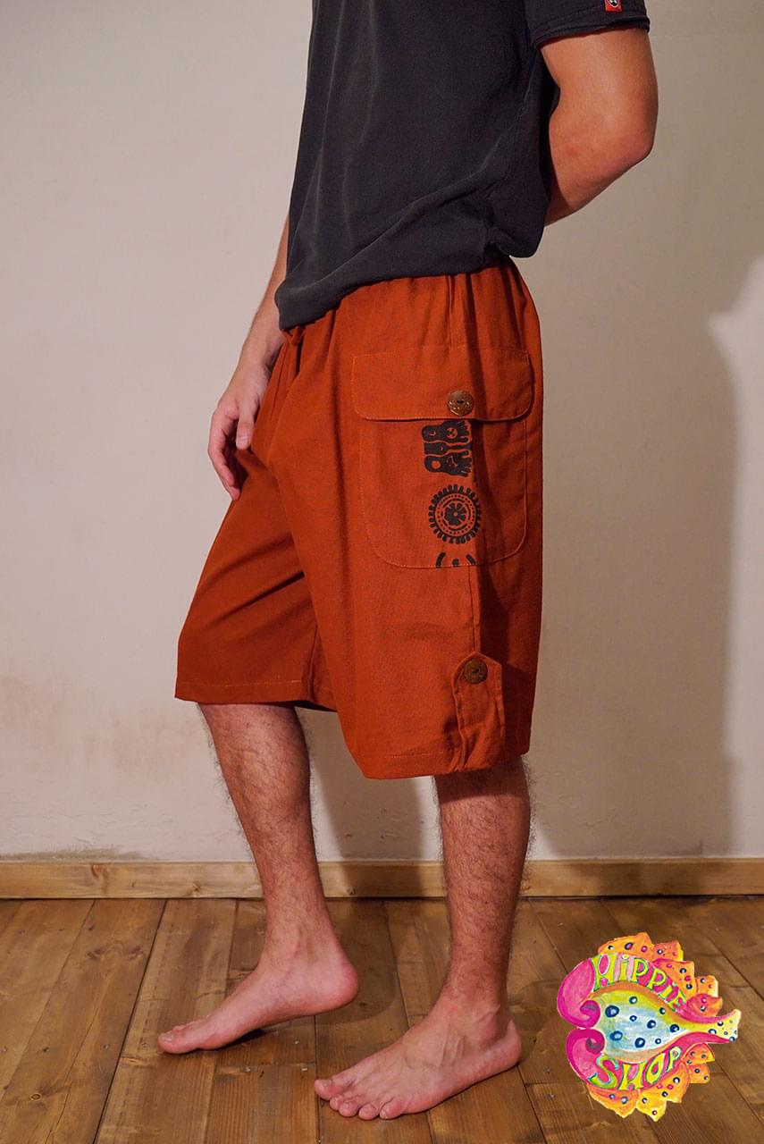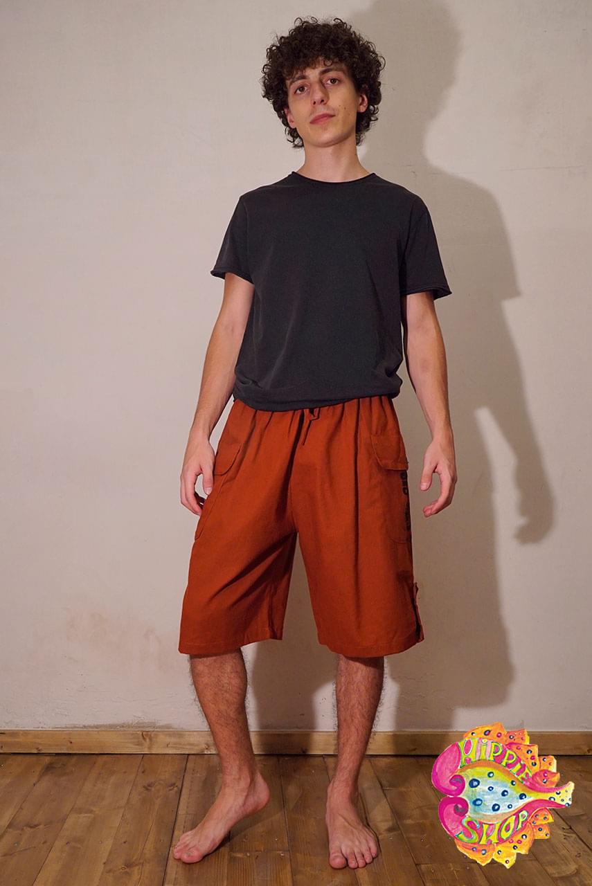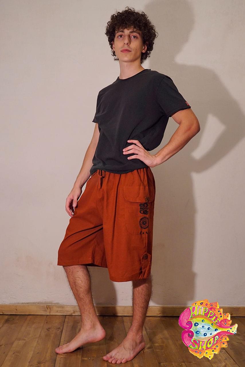 Βερμούδα unisex, 100% βαμβακερό, boho, ethnic, one size, χρώματος κεραμιδί με σχέδιο ΟΜ.