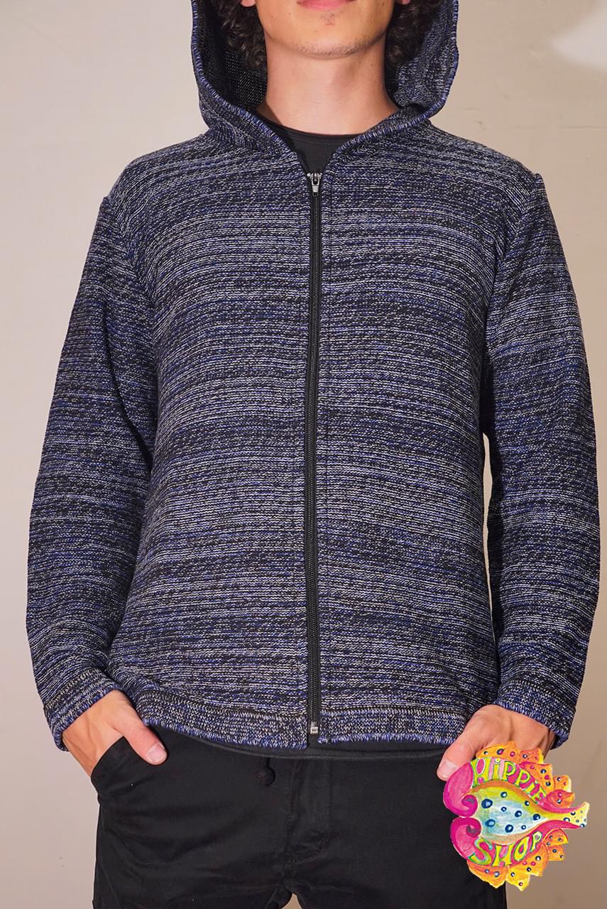 Ζακέτα με κουκούλα, unisex, 100% βαμβακερή, χρώματος μπλε, μέγεθος Small, Medium.