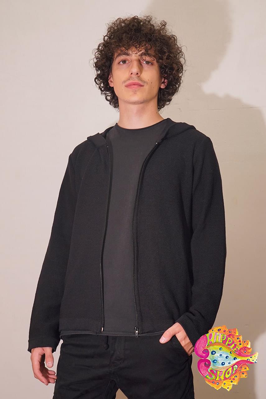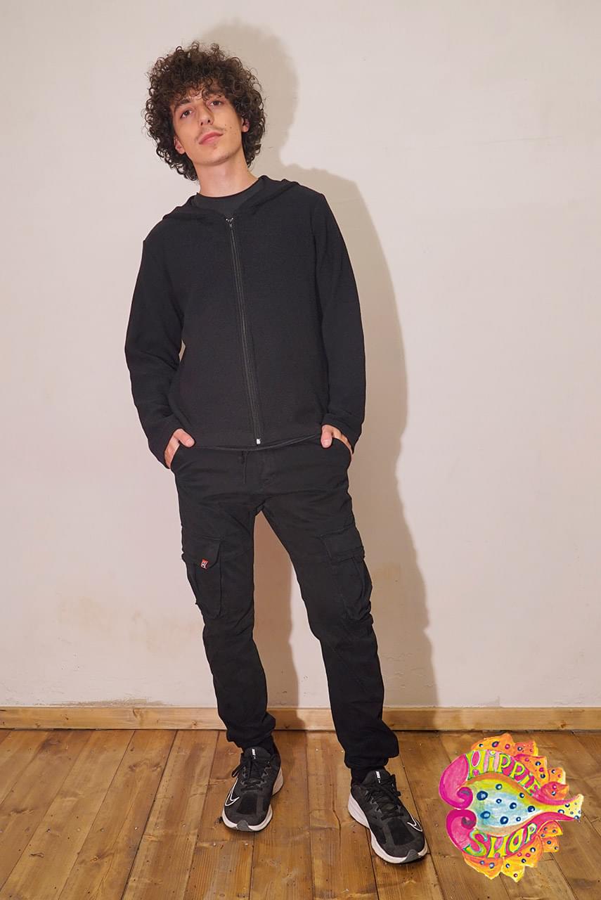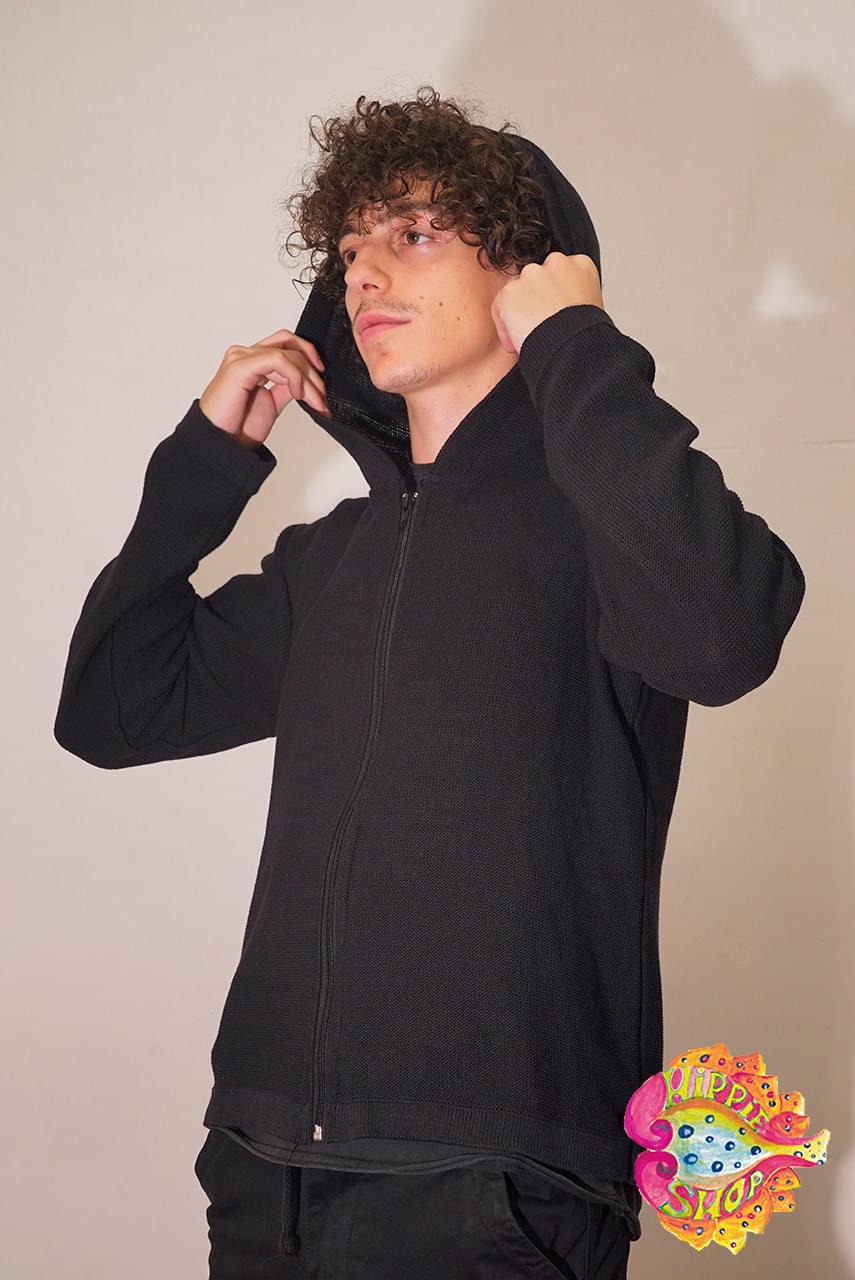 Ζακέτα με κουκούλα, unisex, 100% βαμβακερή, χρώματος μαύρο, μέγεθος Small, Medium.
