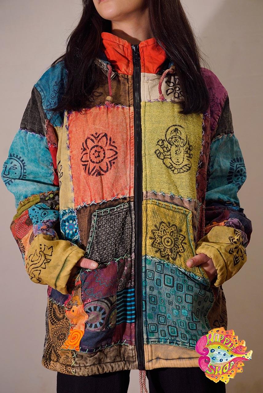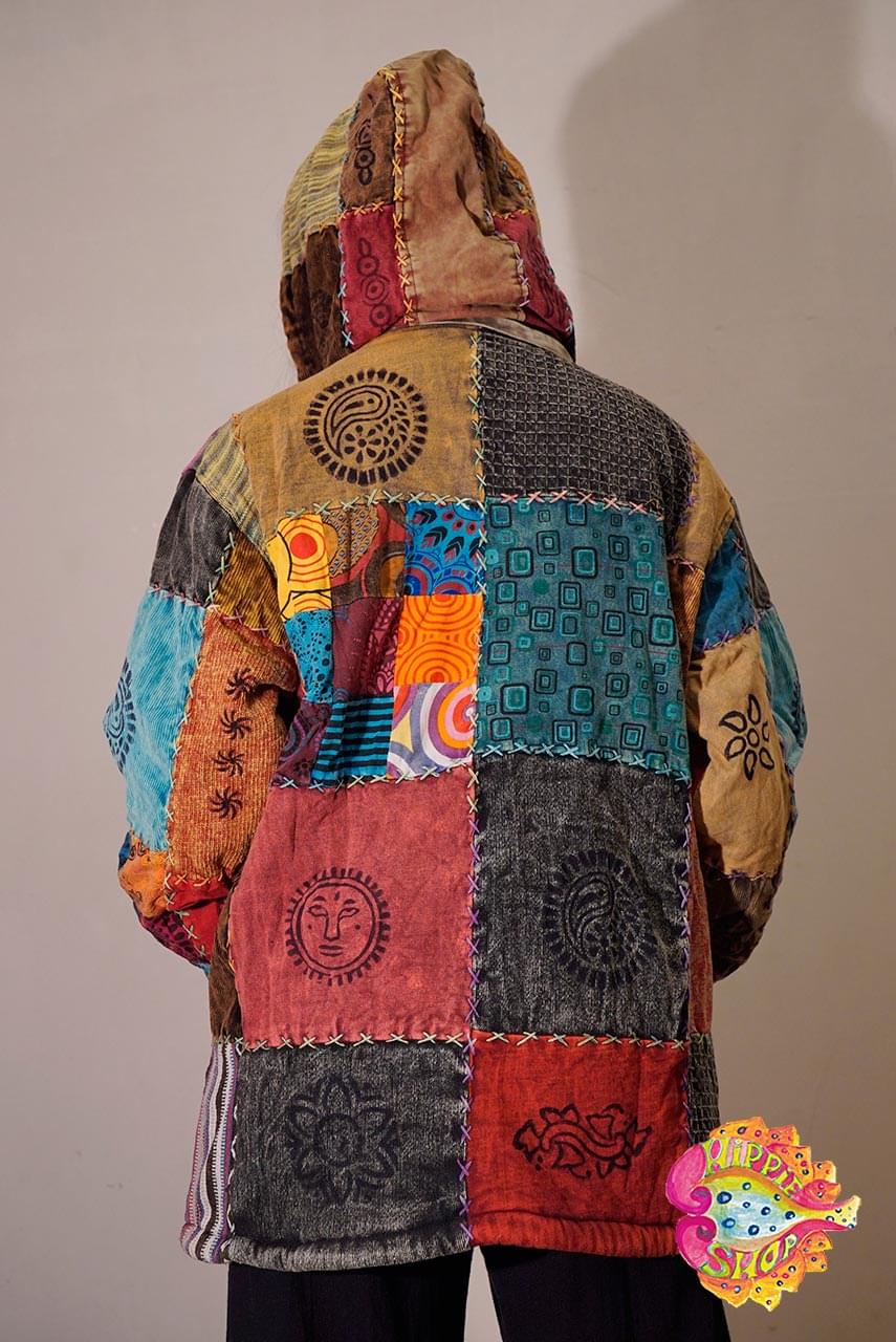 Ζακέτα Patchwork με αφαιρούμενη κουκούλα και fleece επένδυση, unisex, 100% βαμβακερή, πολύχρωμη, μέγεθος Medium