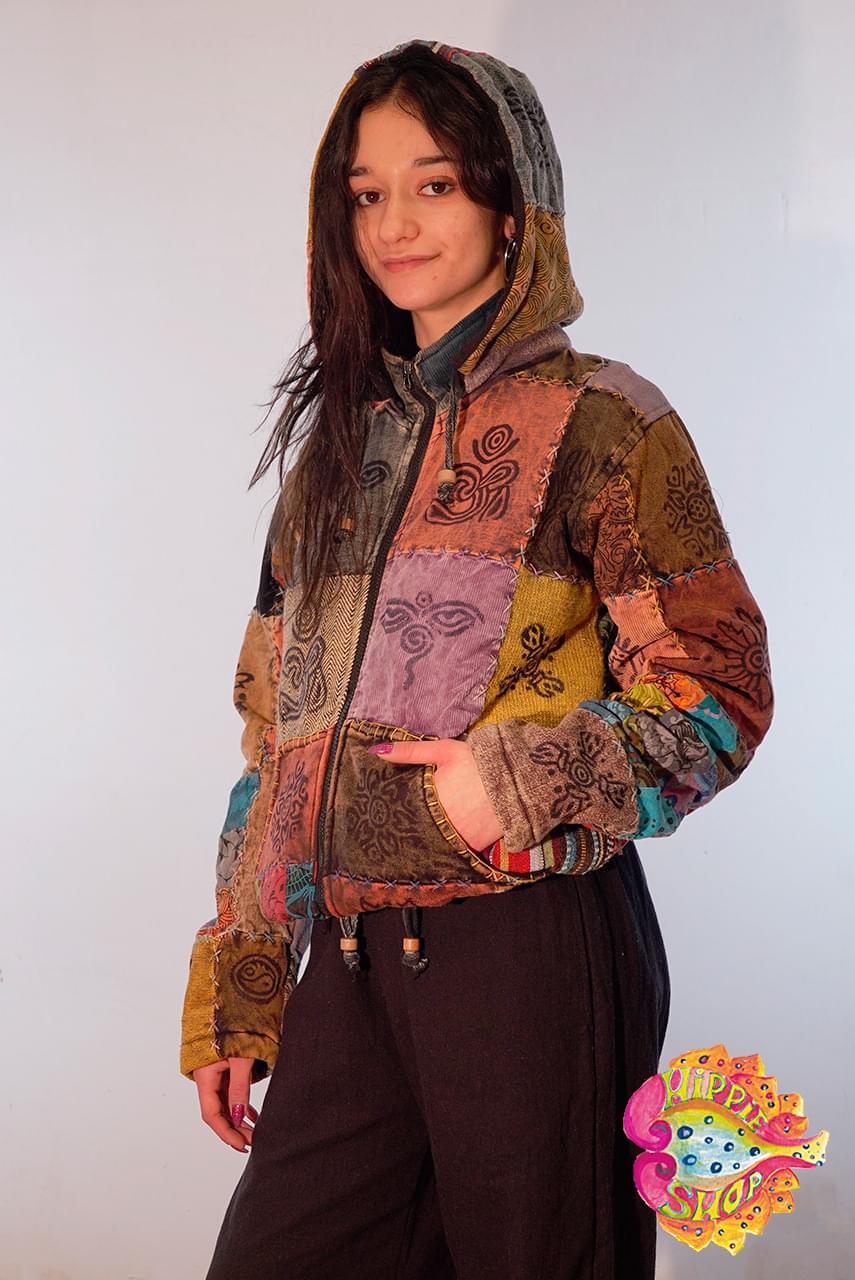 Ζακέτα Patchwork με αφαιρούμενη κουκούλα και fleece επένδυση.
