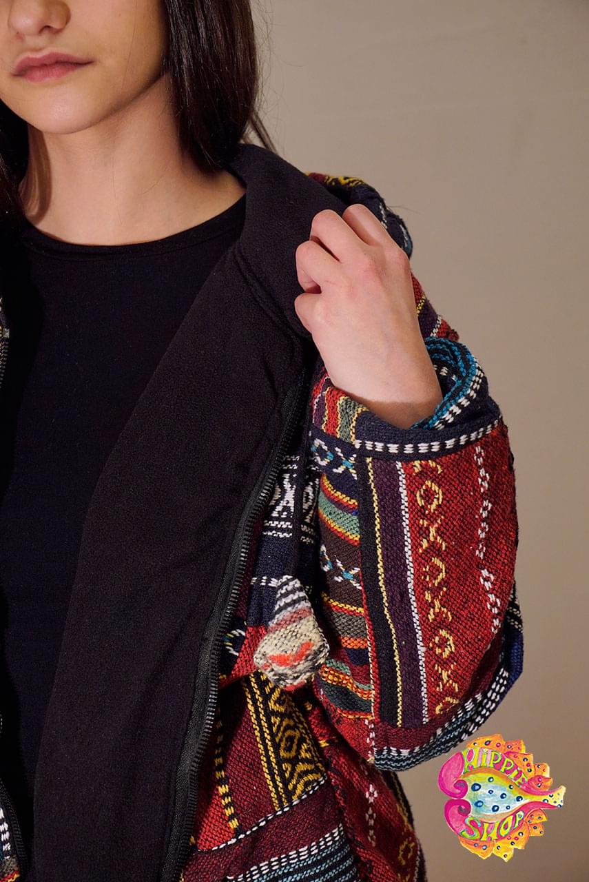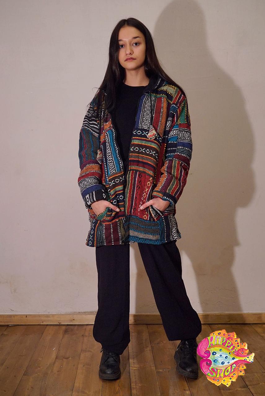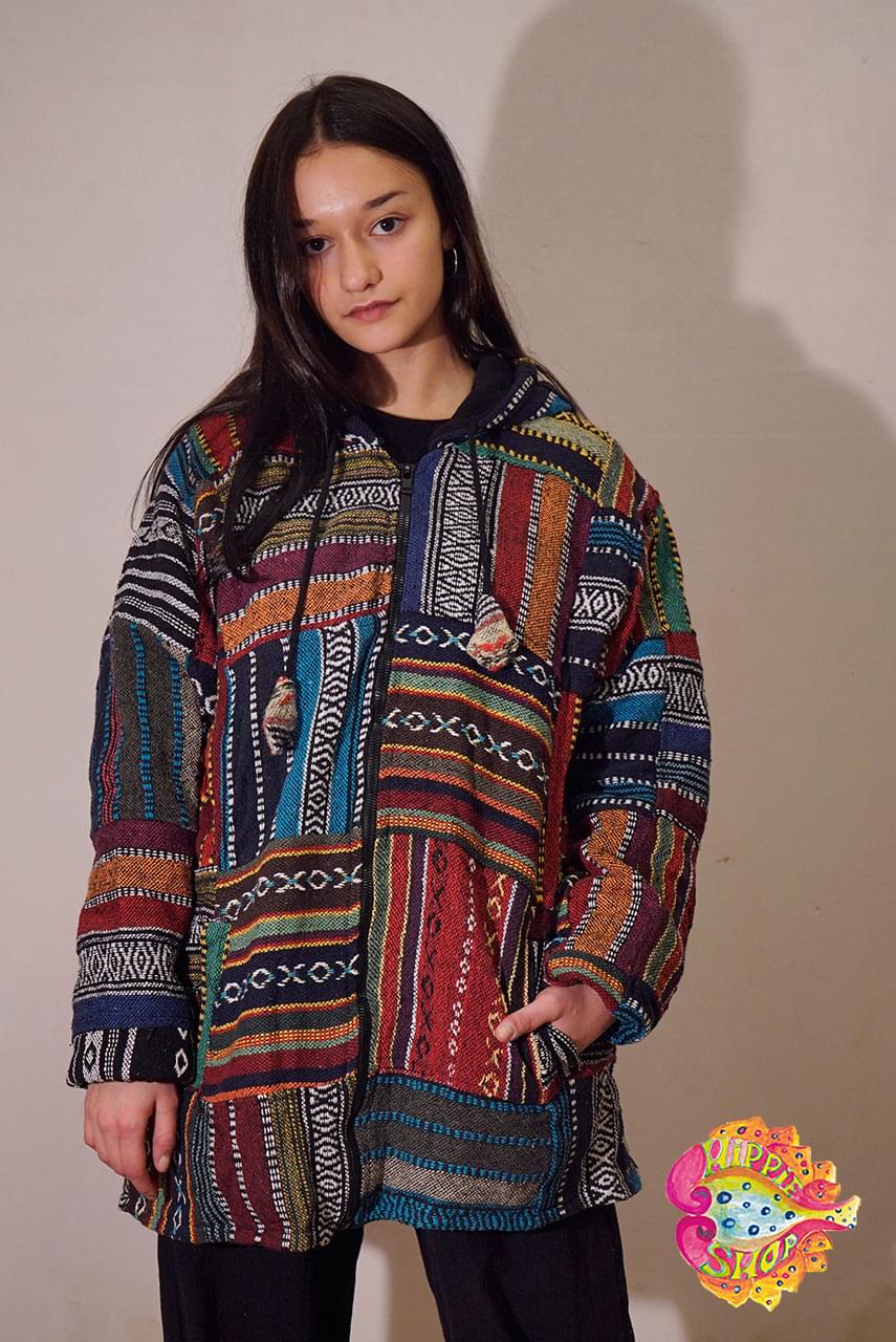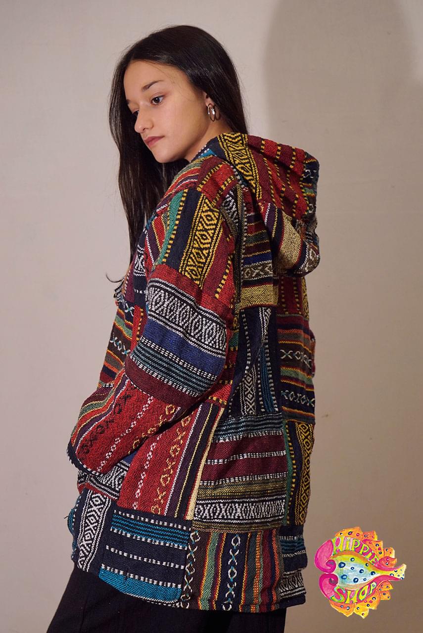 Ζακέτα Πετροπλυμένη Patchwork με κουκούλα και fleece επένδυση, unisex, 100% βαμβακερή, πολύχρωμη, μέγεθος S,M